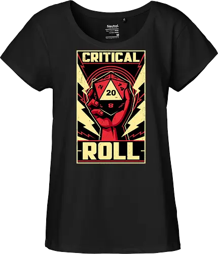This cool and awesome t-shirt is perfect for those who love RPG, fantasy, adventure, and dice. Featuring a hand holding d20 die in a Russian constructivist art style, with the quote "Critical Roll".