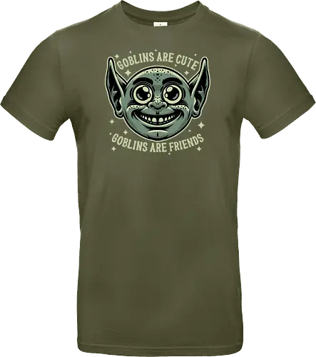 This cute and funny t-shirt is perfect for the nerds and geeks who love RPG, dungeon adventures, role-playing games, and fantasy tabletop. Featuring an adorable spooky goblin head smiling creepily, with the quote "Goblins are cute and friends".