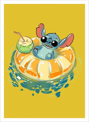 A cute alien having some summer fun in a swimming pool