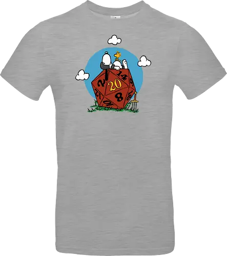 This cute and funny is perfect for the geek and nerd who loves RPG, video games, fantasy, peanuts, Woodstock, and vintage comics. Featuring a bird and an adorable cartoon knight dog lying over a d20 dice.