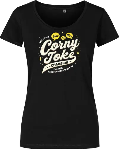 Unleash your inner comedian with this humorous "Certified Corny Joke Champion" design. Featuring distressed text, playful speech bubbles with "Heh" and "Heh," and a banner proudly declaring "Est. 1980 - Forever Groan-Worthy," this graphic is perfect for anyone who loves telling dad jokes, puns, or just enjoys a good, silly laugh. Ideal for those with a great sense of humor, this design is a fun way to show off your expert-level corny joke delivery skills.