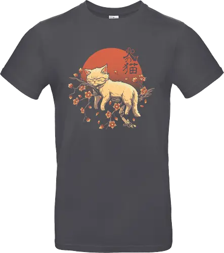 Cat sleeping on Sakura tree created in japanese Ukiyo-e style vintage retro artwork.