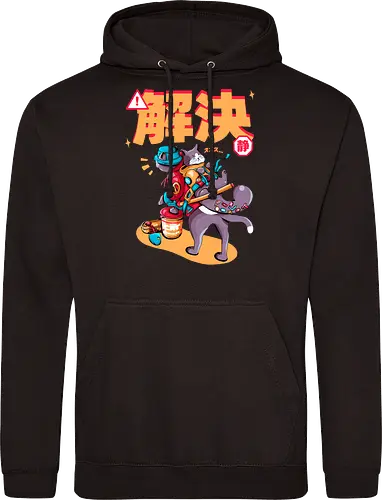 Großer Bruder hat deinen Rücken – im wahrsten Sinne. Während Tokyo in glitchigen Lügen flackert, döst die eine Katze, während die andere die Welt regelt.