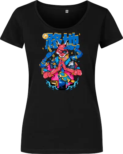 Cyberpunk Fox ist nicht nur ein Shirt – es ist ein Manifest in Fell und Neon. Dieser abgefahrene kybernetische Fuchs hat vier Arme, ein Katana, ein Mudra-Handzeichen eines Mönchs und eine Tokyo-Glitchcore-Ästhetik.
